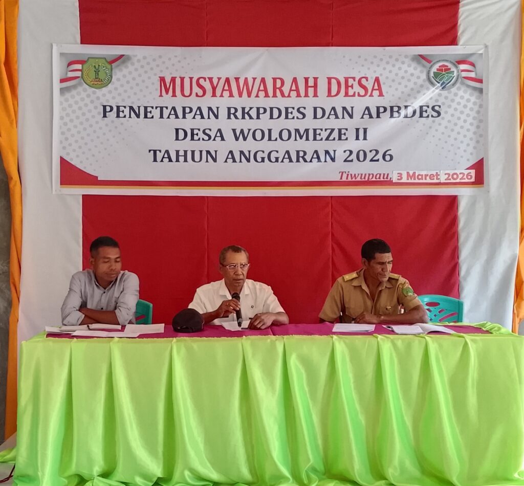 Wolomeze II, 3 Maret 2026 – Pemerintah Desa Wolomeze II bersama Badan Permusyawaratan Desa (BPD) secara resmi menetapkan Rencana Kerja Pemerintah Desa (RKPDes) dan Anggaran Pendapatan dan Belanja Desa (APBDes) Tahun Anggaran 2026 melalui Musyawarah Desa yang berlangsung di Kantor Desa Wolomeze II. Musyawarah tersebut dipimpin oleh Ketua BPD Primus Mamu dan dihadiri oleh Kepala […]